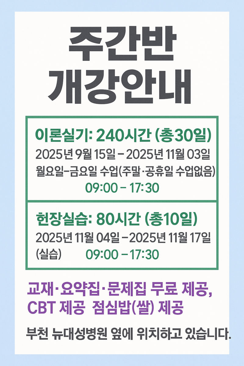 공지 | 164기 주간반 09월15일 개강일정 입니다.