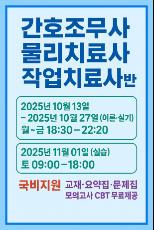 공지 | 35기 간호조무사,물리치료사,작업치료사반 10월13일개강(야간반)
